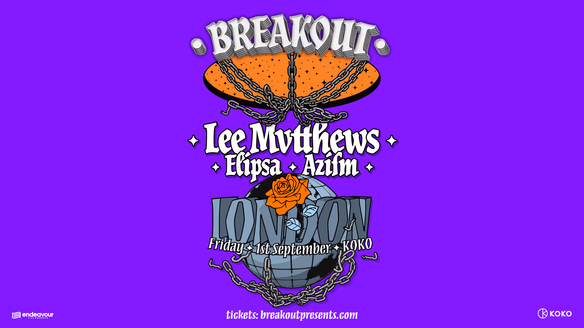 Endeavour Live is proud to present a new drum and bass overseas experience. Introducing BREAKOUT LONDON, a special showcase featuring LEE MVTTHEWS, ELIPSA and AZIFM at London’s iconic KOKO on FRIDAY, SEPTEMBER 1, 2023.
