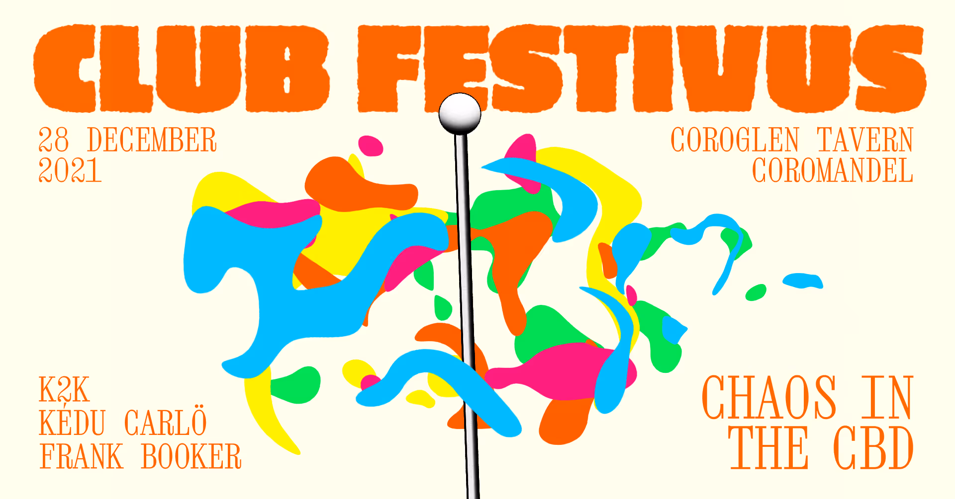 Tis the season. Bask in the Coromandel’s orange-hued glow as we celebrate the homecoming of NZ’s biggest electronic exports - CHAOS IN THE CBD.
