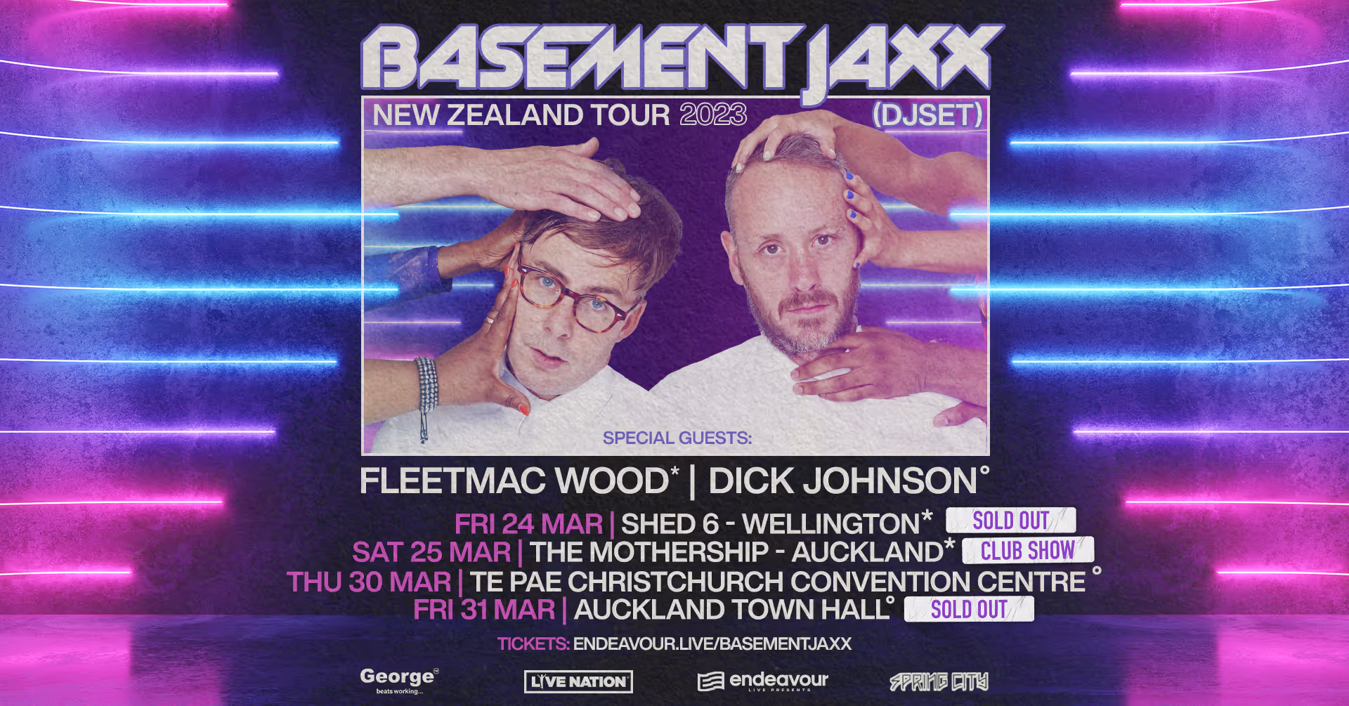 The New Zealand tour will kick off in WELLINGTON at SHED 6 on FRIDAY, MARCH 24 2023, before heading to Auckland for a special one off club show at THE MOTHERSHIP, AUCKLAND on SATURDAY, MARCH 25 2023. The second weekend of the tour sees Basement Jaxx deliver the first ever performance at the brand new TE PAE CHRISTCHURCH CONVENTION CENTRE in CHRISTCHURCH on THURSDAY, MARCH 30 2023, before the tour wraps up at a final soiree at AUCKLAND TOWN HALL on FRIDAY, MARCH 31 2023.